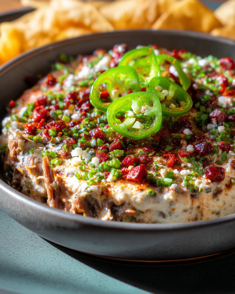 Now here’s where things get interesting: brisket isn’t your typical dip ingredient, right? But trust me, this one’s a game-changer. Roasting the poblanos brings out their earthy sweetness, and when they meet the slow-cooked brisket? It’s magic. Serve it hot and bubbly with chips, bread, or even tucked into a tortilla. However you do it, just promise me you’ll make enough—this one disappears fast.